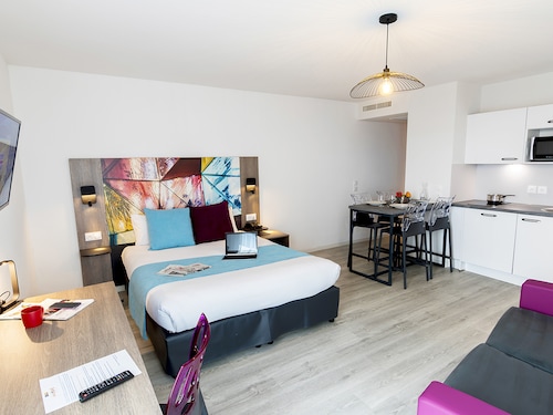 Studio 1 séjour, 1 coin cuisine, 1 salle de bains et 1 WC.